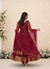 Radiate royal elegance with The Scarlet Majesty — a Designer Maroon Anarkali Suit Set that captures the perfect harmony of tradition and modern allure. Crafted from Heavy Faux Georgette, it features rich embroidery and shimmering sequin detailing, giving you a look that’s both majestic and graceful. Ideal for women who love timeless ethnic glamour, this outfit is your go-to for special occasions where you want to make a statement.
